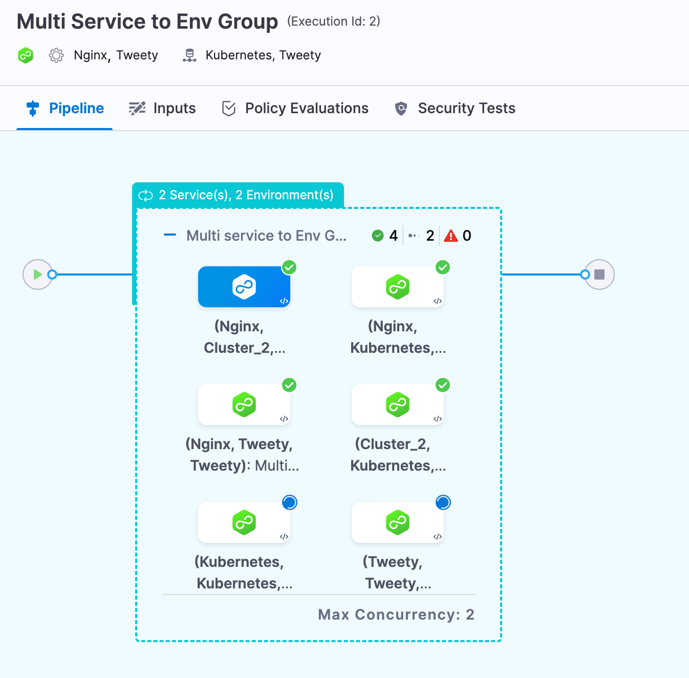 When you view a multi service or environment deployment, you can see Max Concurrency: